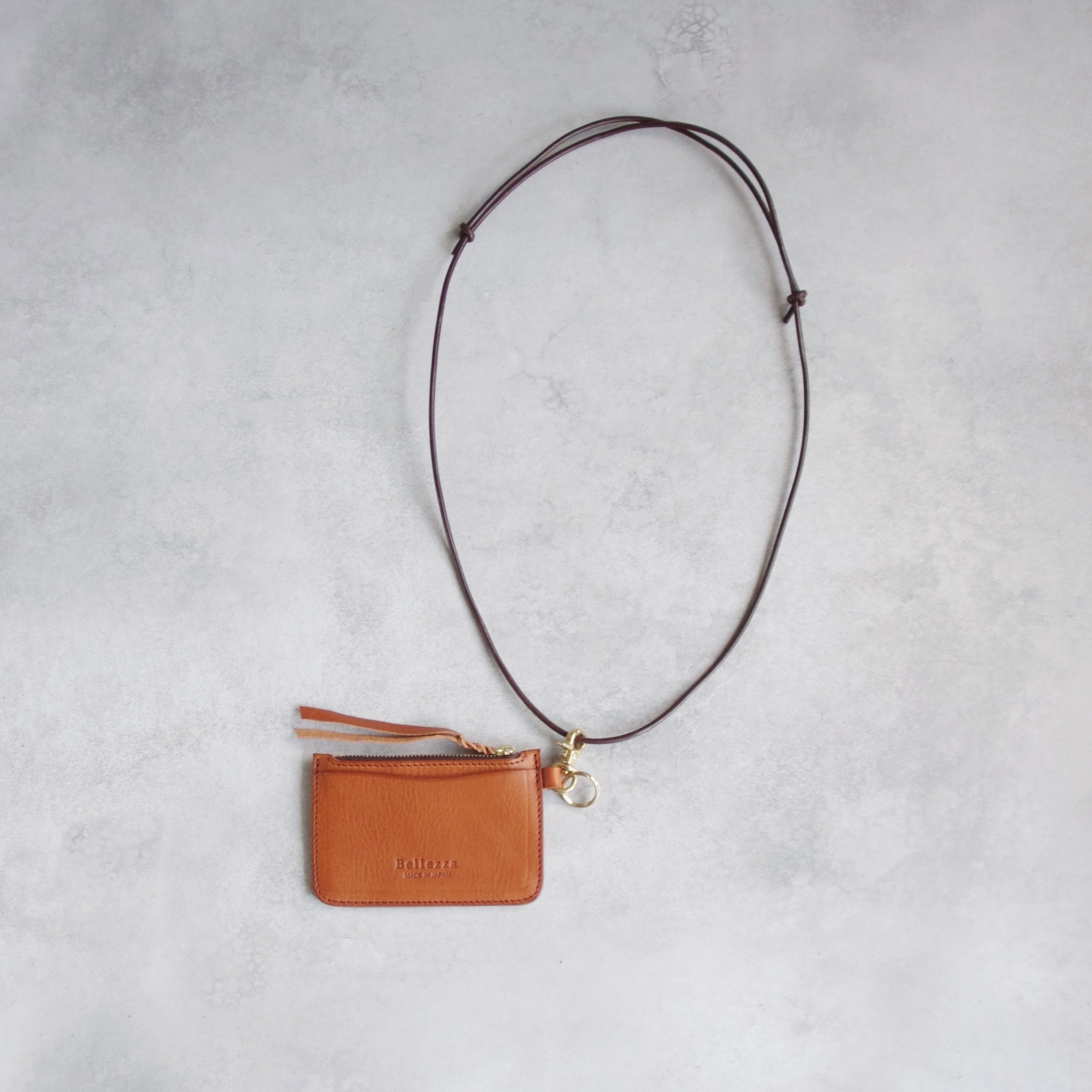【ネックウォレット】ミニ財布 メンズ レディース キーリング付き コニャック