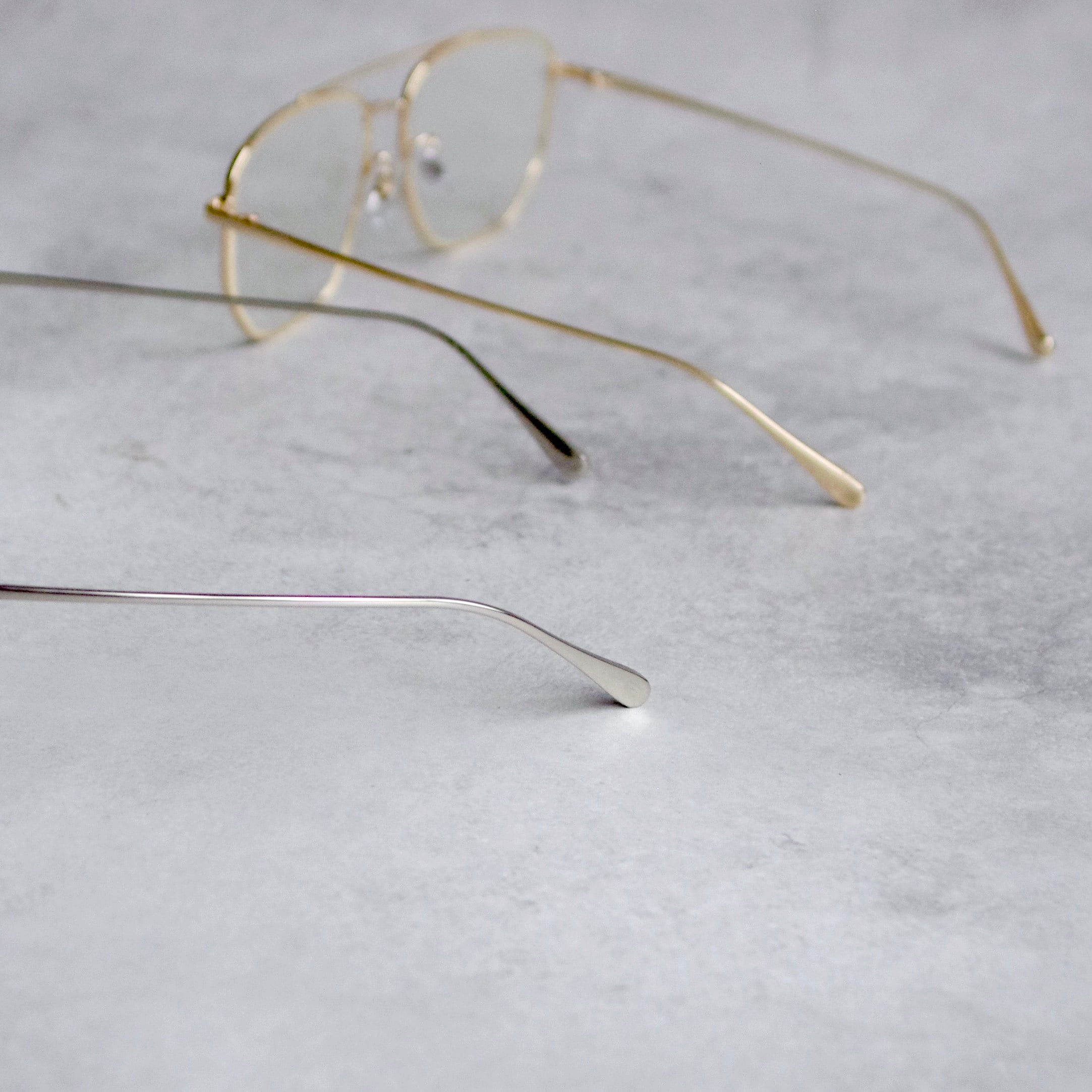 ラグジュアリーなフォルムのメタルフレームは、ゴールドとシルバーの2色展開。ハイブランドの雰囲気をまとったダブルブリッジフレームです。エレガントからカジュアル、個性派まで様々なスタイルと相性抜群です。普段のスタイリングのアクセントにお勧めです。