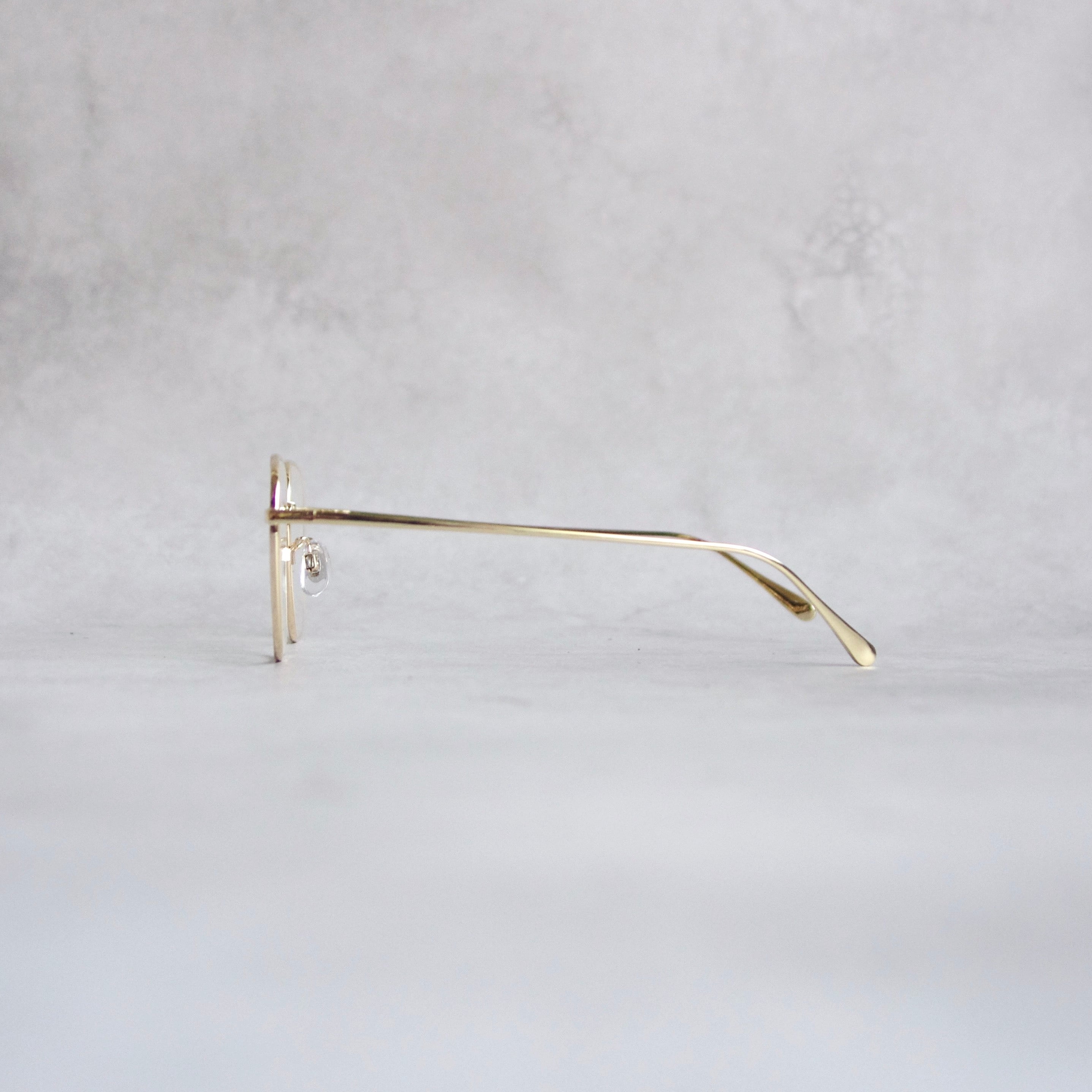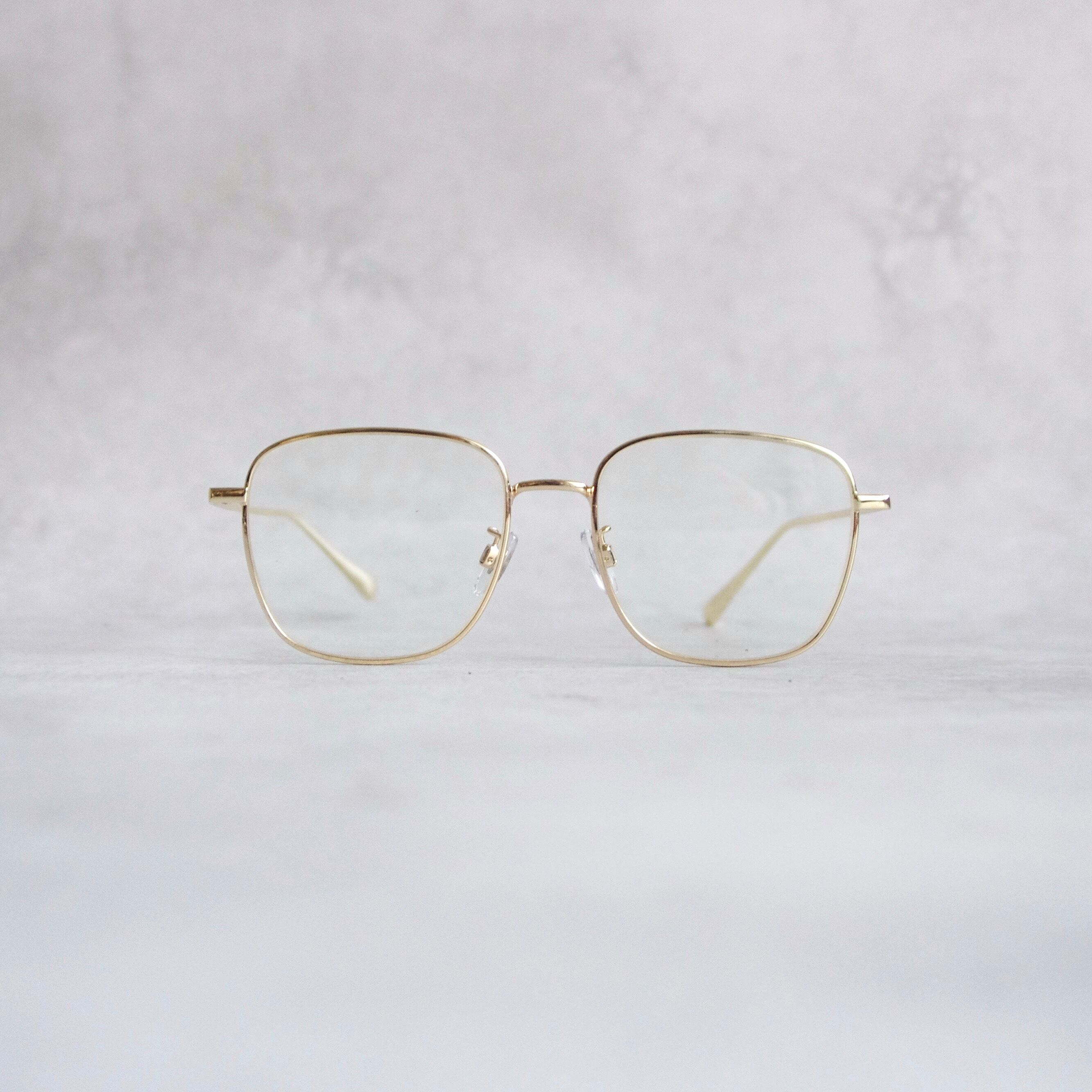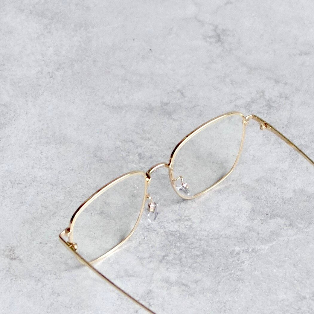 ラグジュアリーな雰囲気の細渕のフレームは、ゴールドとブラウンの2色展開。ハイブランドの雰囲気をまとったスクエアフレームです。ここまでスクエアシルエットは珍しく、掛けてみるとエレガントからカジュアル、個性派まで様々なスタイルと相性抜群です。普段のスタイリングのアクセントにお勧めです。