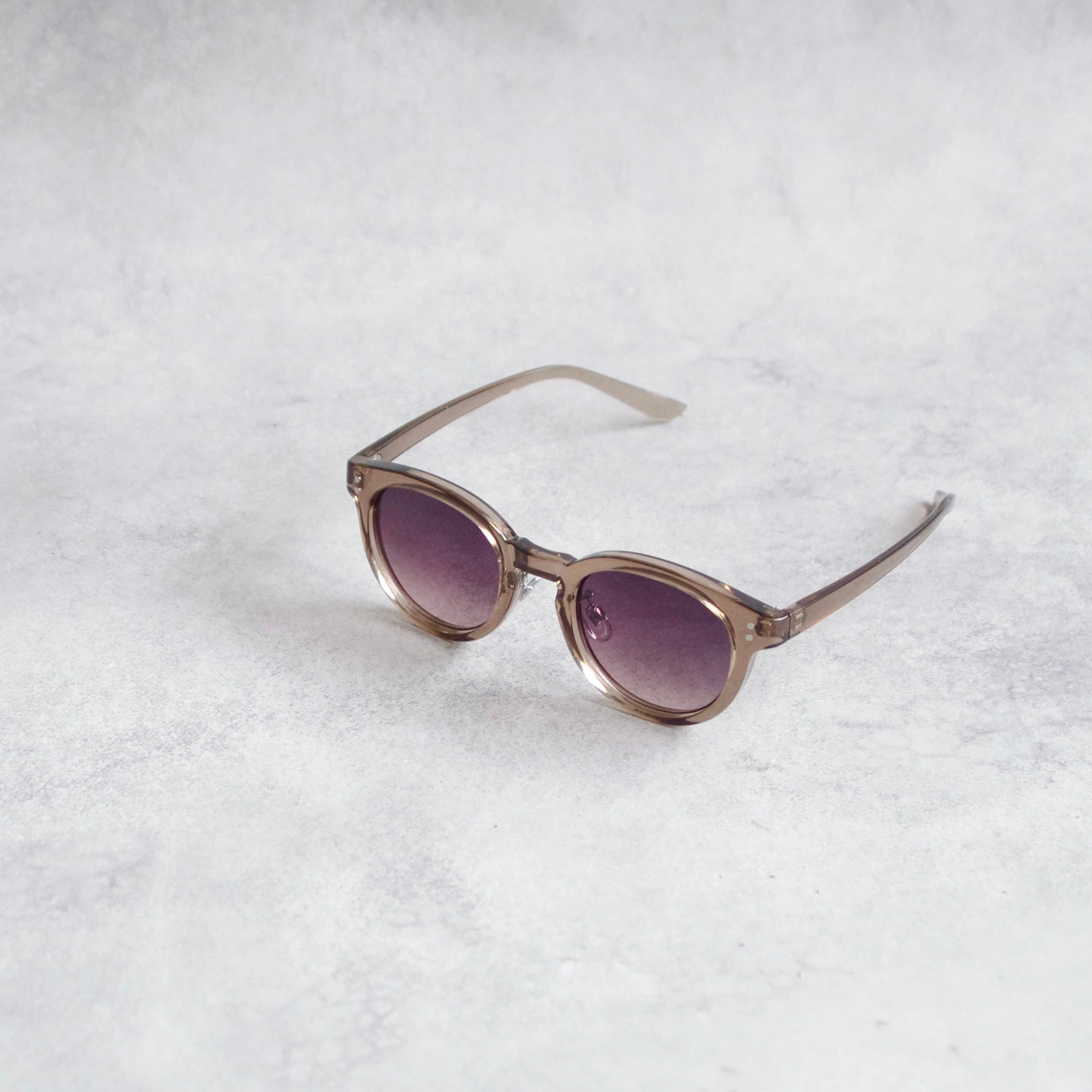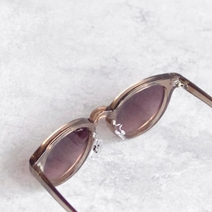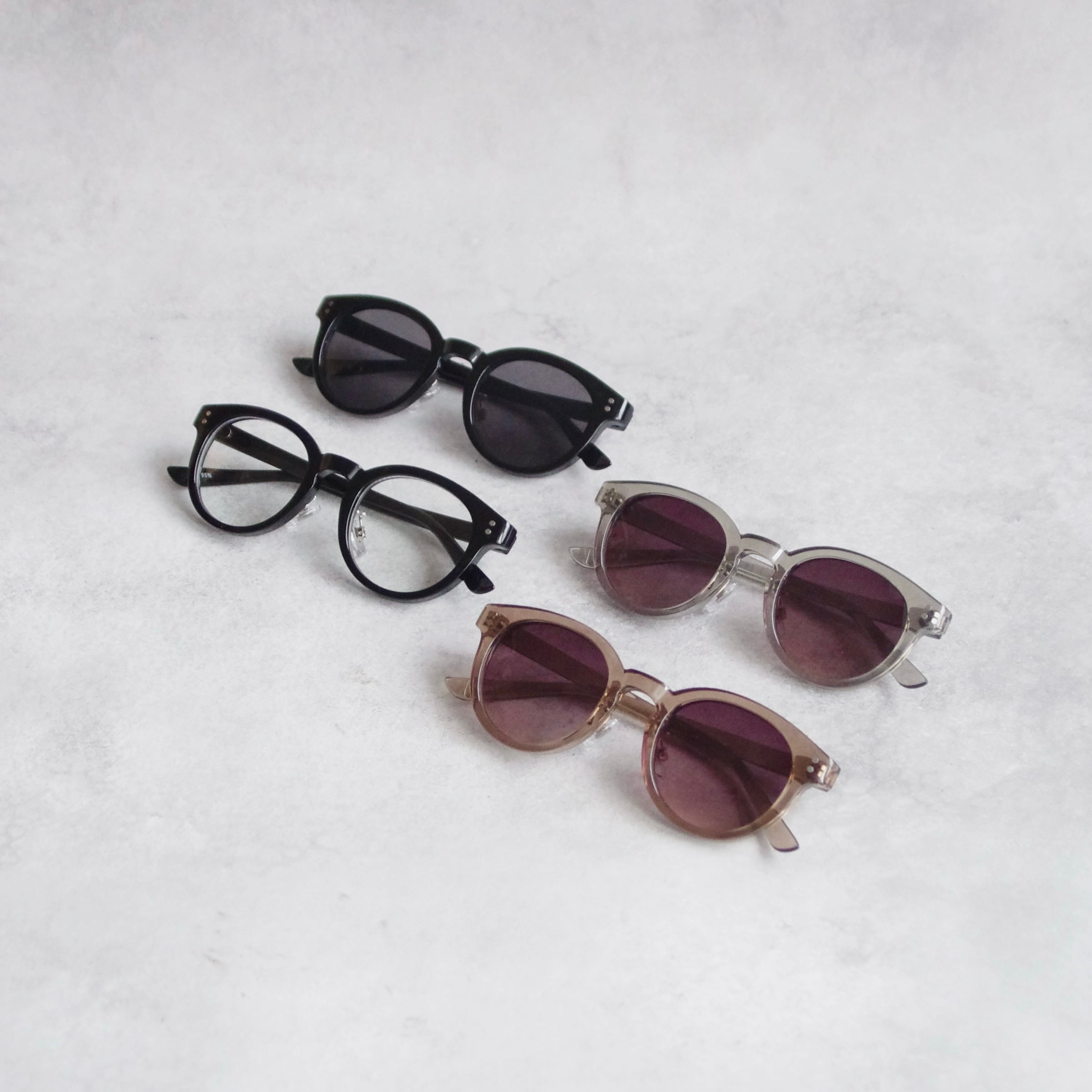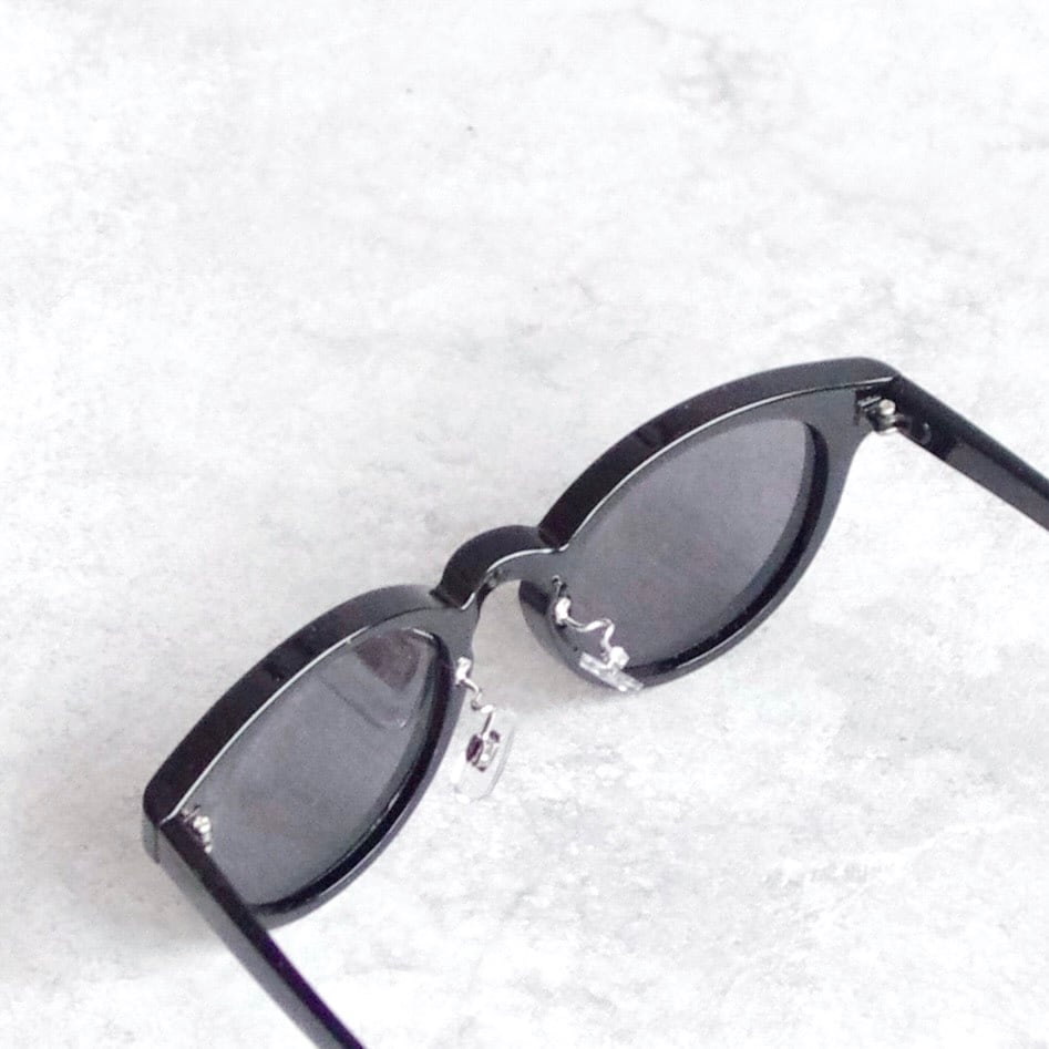 定番のボストンフレームのサングラスです。ブラックカラーのほかにグレーやブラウンカラーのフレームもご用意しました。ベーシックなスタイルはエレガントからカジュアル、個性派まで様々なスタイルと相性抜群です。