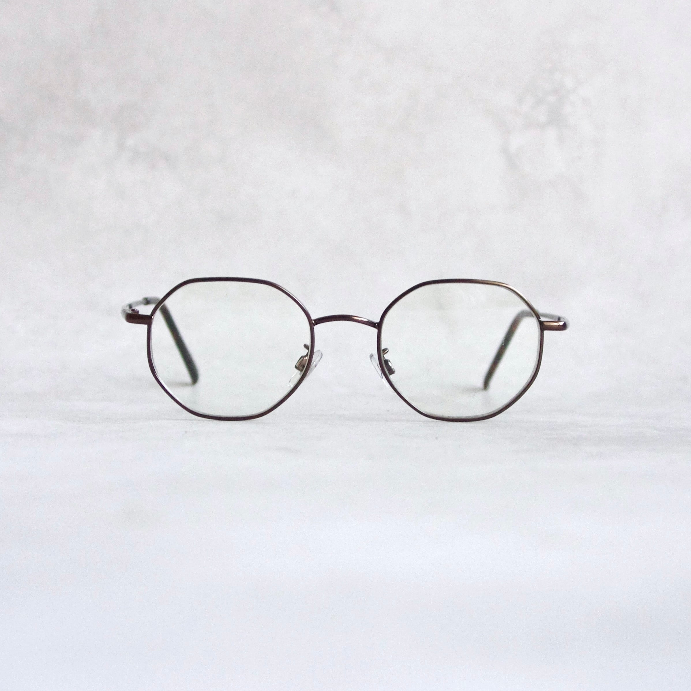 馴染む抜け感のオクタゴン(8角形)フレーム。一見難しい形を掛けやすくデザインしたモデル。フォーマルの中にカジュアル感があり、細身のリムで掛けやすいデザインになっております。
