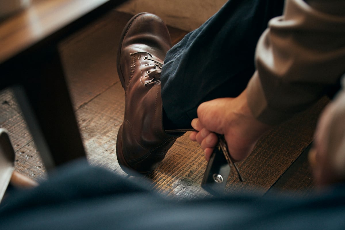 真鍮製の靴べらをイタリアンレザーで巻いて仕立てています。普段お使いの鍵を取り付けることができるので、携帯できるお洒落な靴べらとして愛用できます。靴(特に革靴)を大切に扱い長持ちさせる為に必要不可欠なアイテムです。使えば使うほど時間が経つにつれて艶が増し、味わいの変わるあなただけの経年変化をお楽しみ下さい。長年に渡って愛用できる携帯靴べらです。